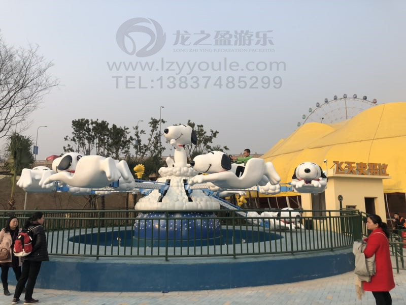 飛天史努比”是許昌龍之盈游樂(lè)設(shè)備有限公司利用自控飛機(jī)原理,結(jié)合系列電影《史努比》元素,開(kāi)發(fā)的一款新型游樂(lè)項(xiàng)目。我公司的這款飛天史努比獨(dú)樹(shù)一幟,顏色干凈、簡(jiǎn)潔,款式簡(jiǎn)約而不簡(jiǎn)單!底部的深藍(lán)色和淺藍(lán)色和諧的融合在了一起,像碧綠的海面一樣,飛在天空中白色可愛(ài)的史努比像天空中飄浮的云朵,與藍(lán)色的天空相互呼應(yīng),承現(xiàn)出一幅碧海藍(lán)天的美麗景象!游客可以通過(guò)里面的控制裝置控制史努比的飛行高度,可愛(ài)的史努比帶著游客在藍(lán)色天空下盡情地飛翔,放飛心情!
