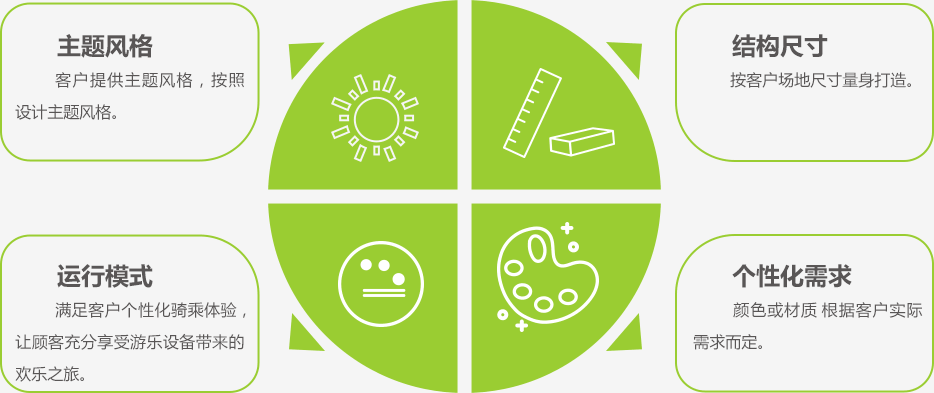 龍之盈不僅能設計制造標準型游樂設備,也能提供個性化設備的設計方案及制造產品以滿足客戶多樣化主題產品需求。為此,龍之盈游樂特設定制服務,明確客戶需求并制定出解決方案,從產品的設計制造到安裝運營,最大限度的滿足客戶需求。
