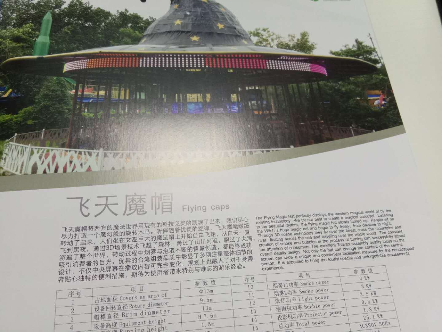 如下圖飛天魔帽也是我們龍之盈游樂設(shè)備有限公司生產(chǎn)出來的兒童游樂設(shè)備,聽伴隨著優(yōu)美的旋律,飛天魔帽緩緩的轉(zhuǎn)動了起來,人們坐在女巫巨大的魔法帽上開始自有的飛翔,從白天一直飛到黑夜,通過3D場景技術(shù)飛越過了森林,跨過了山川河流,飄過了大海游遍了整個世界,轉(zhuǎn)動過程中煙霧與泡泡不斷的情景創(chuàng)造,都能夠成功吸引消費者的目光。