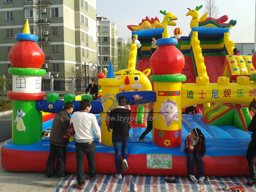其次,龍之盈游樂(lè)設(shè)備廠家提醒,充氣類兒童娛樂(lè)設(shè)施,和其他大多數(shù)設(shè)備一樣,有它的使用期限。經(jīng)營(yíng)者要注意定時(shí)的檢查和保養(yǎng),以免縮短其壽命。比如發(fā)現(xiàn)設(shè)備破損,可在破損處涂上專用膠,將其粘合,幾分鐘后便可正常使用。如果是大面積的破損,則需要專業(yè)的技術(shù)人員來(lái)進(jìn)行維修。