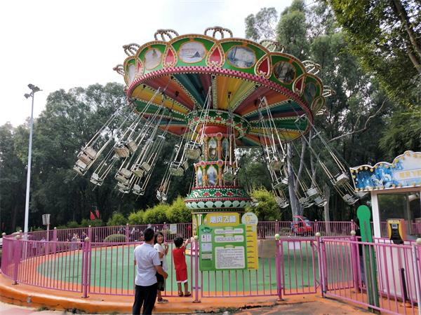 搖頭飛椅像是一把能搖頭的大傘,下吊著很多把靚麗、精致、安全的吊椅,在大傘轉(zhuǎn)動或搖頭時,吊椅在空中波浪起伏、旋轉(zhuǎn)飛舞。此時乘坐在吊椅上的游客充滿刺激、浪漫的感覺。